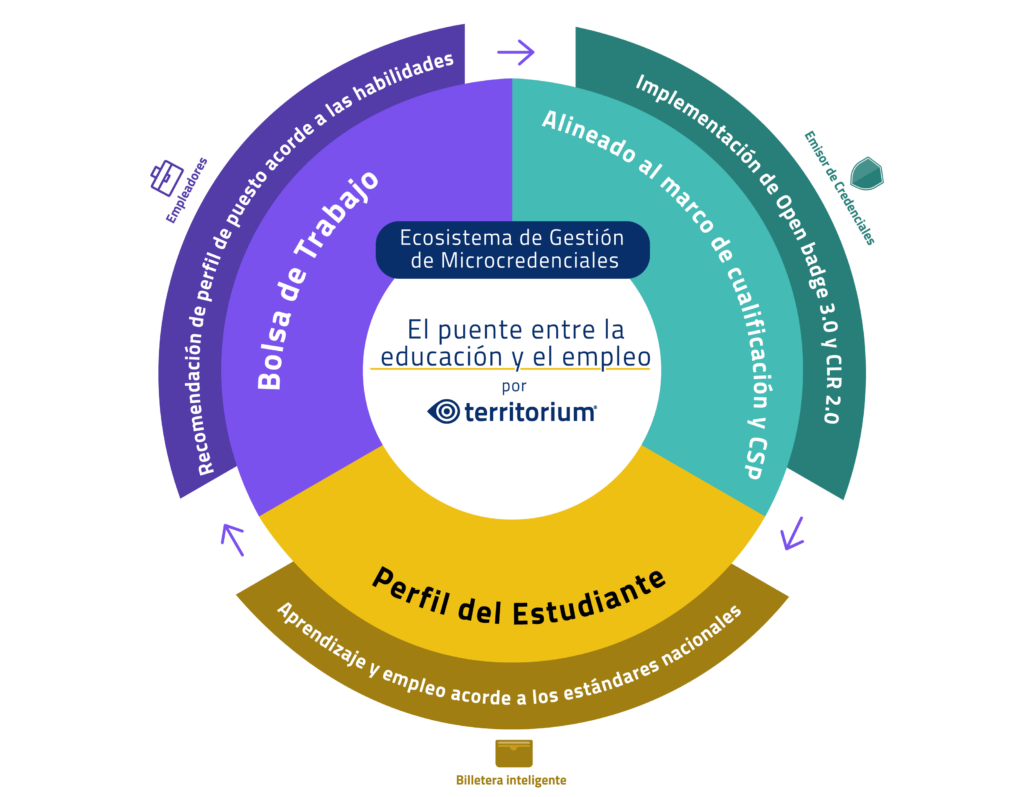 Generación de insignias digitales y microcredenciales seguras, reconocidas por instituciones educativas y empleadores.